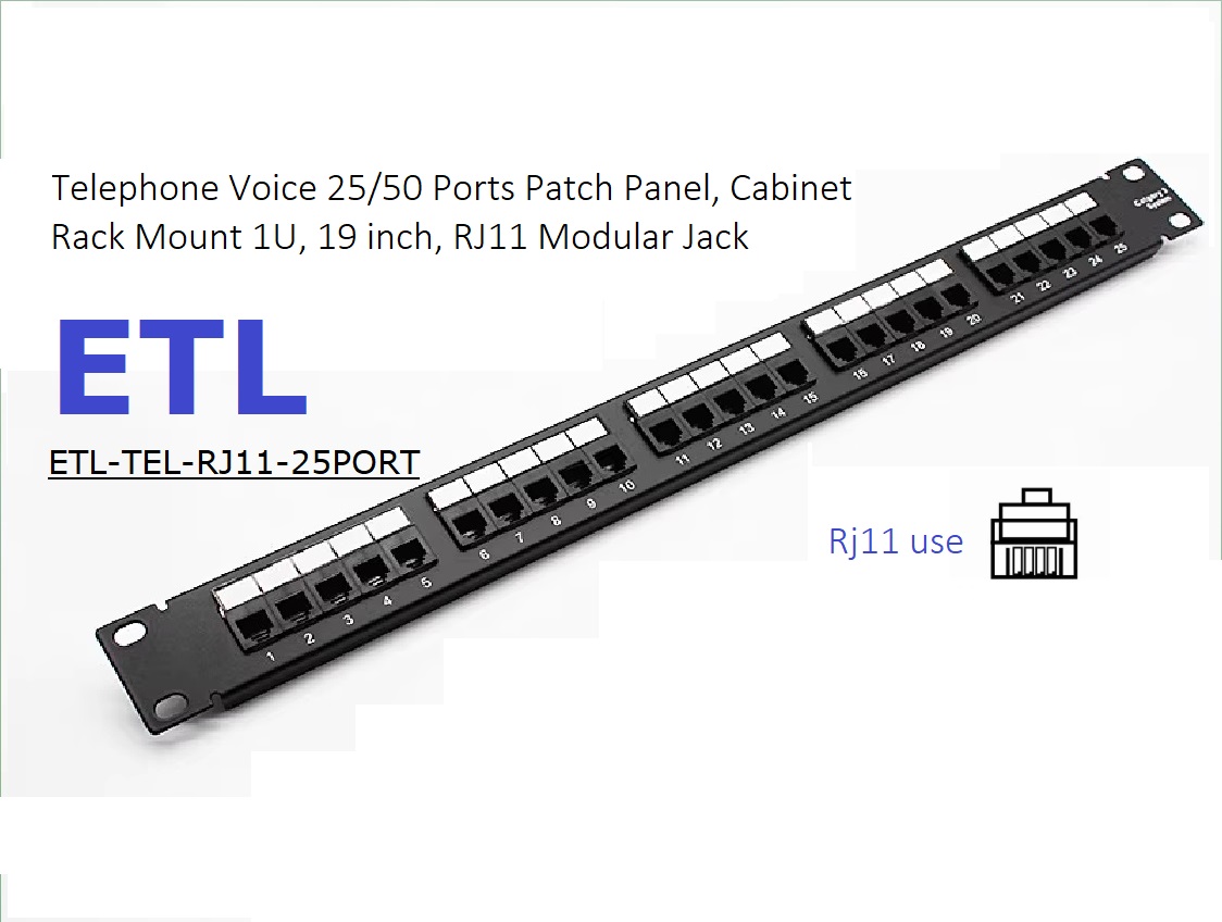 Telephone Voice 25Ports RJ11 Patch Panel, Cabinet Rack Mount – 1U/2U, 19 inch, RJ11 Modular Jack,